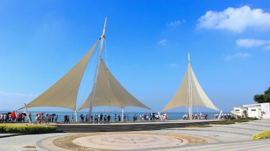 环岛路沿海而建,沿途有众多景点。走在安静的木栈道上,近处沙滩、远处的海水以及日出日落映衬着的那片海景让人难以挪步。还可以租辆自行车骑行,让海风拂面,别有一番韵味。