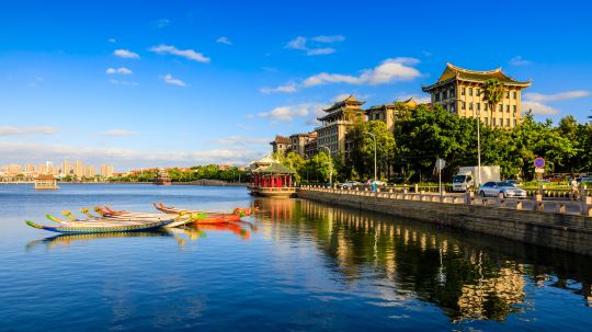 龙舟池位于厦门市集美区,是陈嘉庚先生在海滩上筑堤围垦而成,分外、中、内三池,总面积24万平方米。池畔建有式样各异的七个亭子。景色优美。