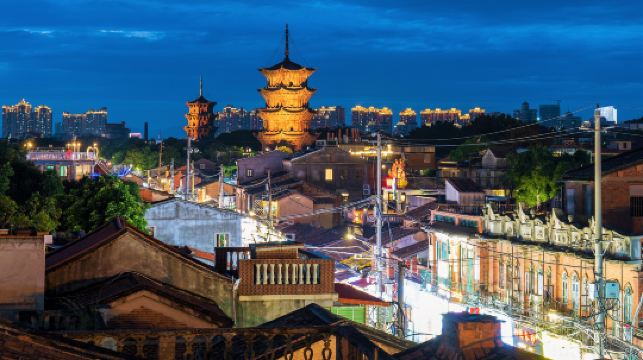 泉州古城古称温陵、刺桐、鲤城。位于福建泉州市鲤城区。素有“海滨邹鲁”“文献之都”美誉,自盛唐起,泉州古城开始兴建,五代及宋、元、明,随着海外交通和对外贸易的繁荣与兴盛不断扩大。宋元时期,刺桐港的海上贸易活动空前繁盛,帆樯林立,梯航万国,留下了“涨海声中万国商”“市井十洲人”的繁华图景。千年后,历史文化名城核心区古城仍保有丰富的历史遗存、较完好的古城肌理等,这些“活记忆”让世人能够回望曾经灿烂的岁月,感受千年古城的悠久历史和文化积淀。