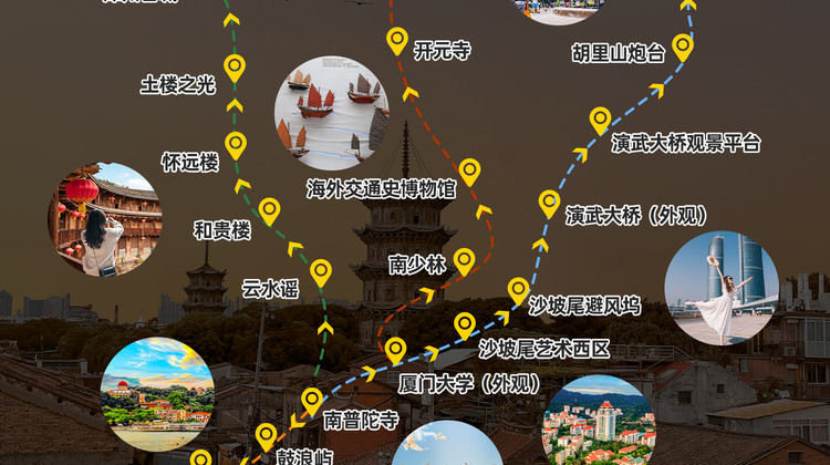 2. 厦大白城-胡里山炮台-曾厝垵-椰风寨-会展中心-观音山海滩-五缘湾;