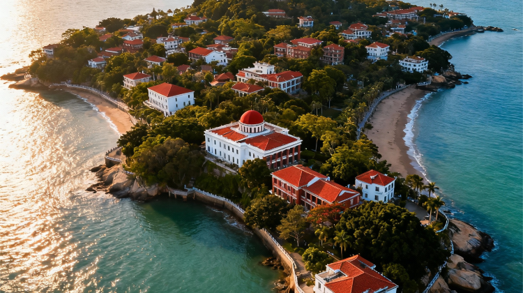 鼓浪屿是一个宁静美丽的小岛,凭借其独特的景色,已然成为厦门名副其实的旅游名片。岛上有日光岩、菽庄花园、八卦楼风琴博物馆等景点,在日光岩内,可以俯视全岛,将景色尽收眼底。