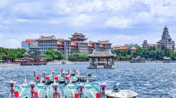 集美学村-龙舟池位于厦门市集美区,是陈嘉庚先生在海滩上筑堤围垦而成,分外、中、内三池,总面积24万平方米。池畔建有式样各异的七个亭子。景色优美。
