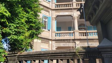 金瓜楼屋顶的两个金瓜,阳光下澄黄泛金光,神韵古朴,十分醒目。门楼采用中国歇山顶,重檐翘角,梁柱及门楣装饰有各种浮雕。虽然这里是私人住宅,但是隔着墙还是能欣赏的八九不离十。