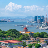 世茂海峡大厦,即厦门双子塔,是厦门标志性城市景观之一,它是两个独立的塔楼并由裙房相连。外观上形似美丽的风帆,并融入了厦门市花“三角梅”的视觉元素。这两栋高度约为300米的超高层建筑,其中一座作为豪华酒店和写字楼,另一座则作为SOHO办公,而裙楼则建设成集购物、休闲、娱乐、餐饮等于一体的综合性商业。厦门双子塔的主要特色在于它55层的云上厦门观景厅。360度的宽阔视野,你可以高空漫步,远眺鼓浪屿,俯瞰厦大、沙坡尾、万石植物园等,整个鹭岛风情都尽收眼底。厅内还设有咖啡雅座,卖各种特色纪念品、工艺品,是来厦门不得不去的一处地标。